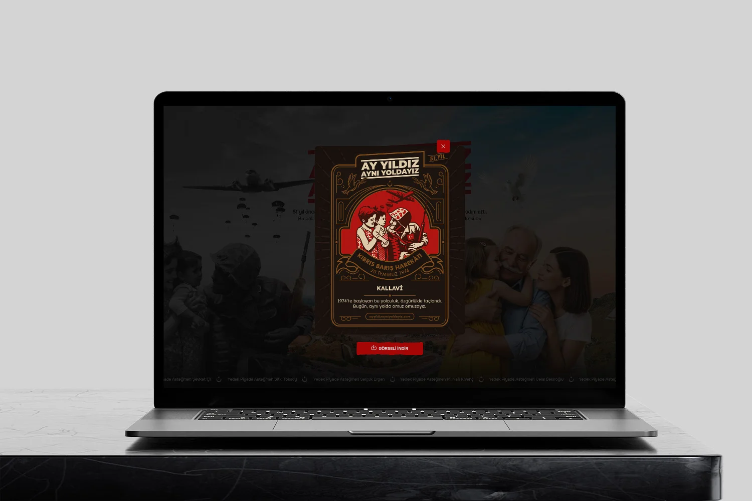 For the 51st year of the TRNC we didn't just design a commemorative visual; we built a digital platform that puts the user at the center of the experience. Visitors can enter their name and surname on the site and instantly generate a personalized visual. Thus the meaning of July 20 transforms from collective memory into a personal experience.